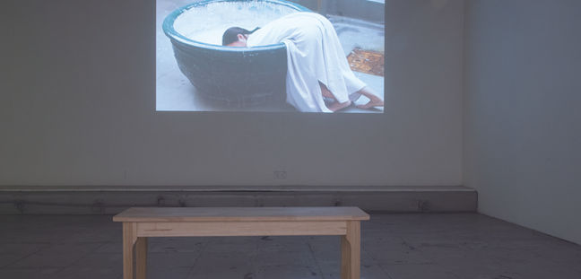 鋪陳收錄體內的生活痕跡,日常本來就是零散瑣碎,內心風景該如何轉載?楊怡孜用身體檢視五味雜陳的歷程,羅玉梅則收錄石頭於水中下沉與消散的聲音,連結離人的失語日常。透過聲音裝置及聲譜(Score)重構水中石頭的聆聽經驗。同時,嘗試捕捉舞者每個當下,消失的𣊬間——一呼一吸、一動一靜。活著的體證要在時間劃上刻度,只能放緩放慢。一場展覽體驗,間歇著三小時的跨媒介對話,穿越盤根,將宛如溯溪般的過程,匯聚成讓身體說話的空間。
